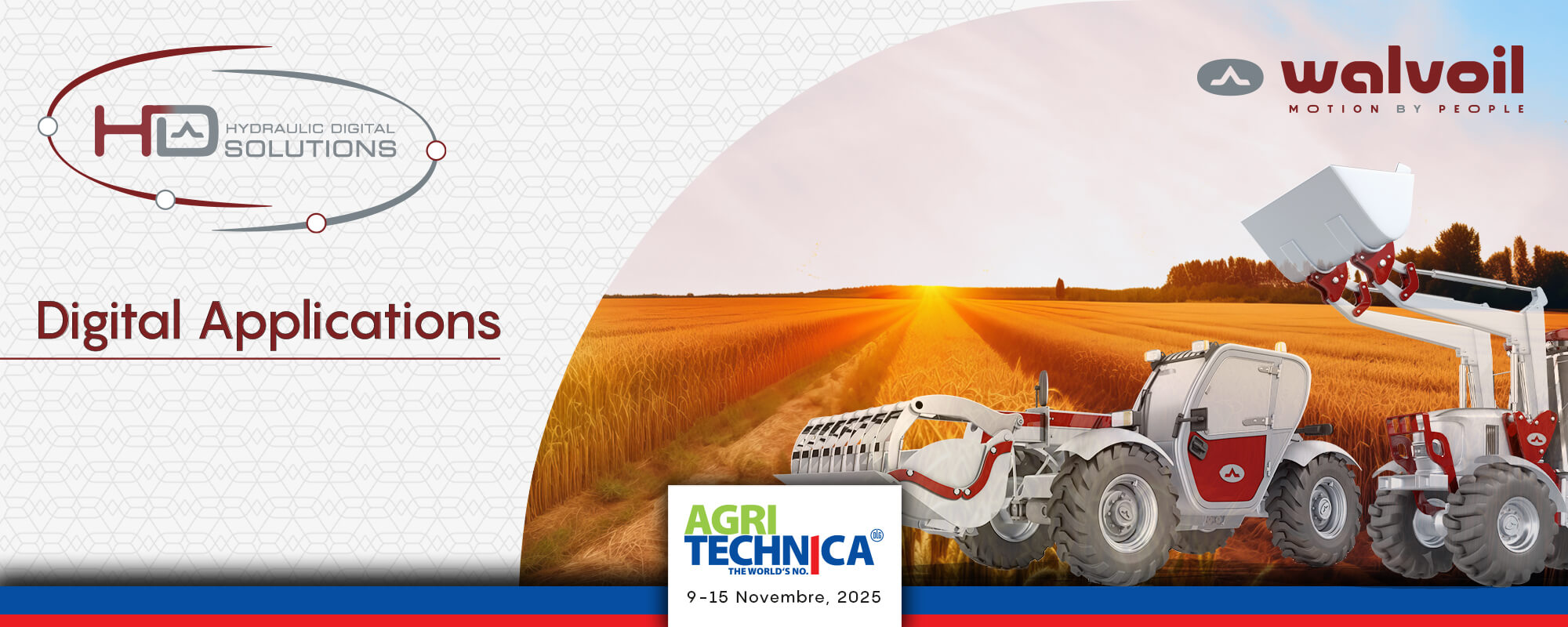 Ad Agritechnica, Walvoil risponde con le "Digital Applications", funzionalità applicative parte delle nostre Hydraulic Digital Solutions.