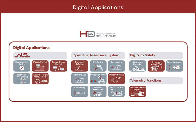 Il sistema ALS, i cui test effettuati in collaborazione con il produttore di telehandler Dieci hanno confermato una riduzione dei consumi superiore al 5-6%, può essere utilizzato come parte integrante del distributore oleodinamico o inserito sulla pompa a cilindrata variabile.