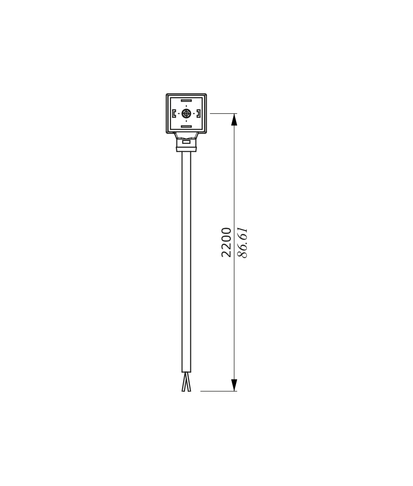 Connettore DIN, 2 poli + T, femmina, con cavo preassemblato, L=2200m (1 solenoide , DPC130).