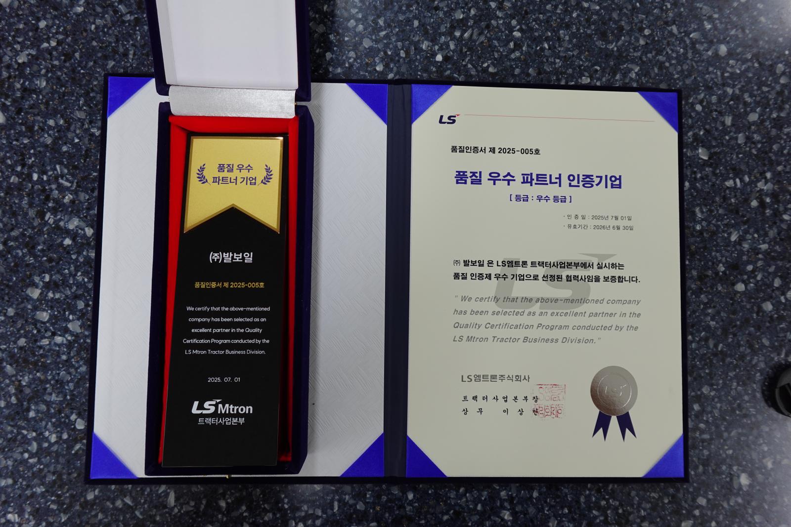 This recognition is a testament to our continuous commitment to quality, reliability, and strong partnership with LS Mtron, built through years of collaboration in the agricultural machinery and hydraulic systems sector.